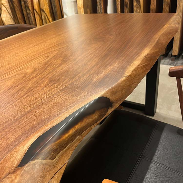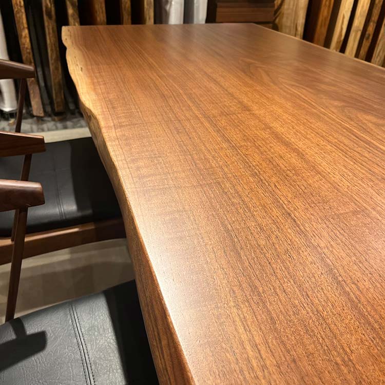 木には人と同じように個性があります。樹種や産地、樹齢はもちろん、同じ丸太から製材した一枚板でも同じものはひとつとしてありません。同じ名前の木でも色の明るいもの、暗いもの、節があるもの、傷があるものなど様々です。それは木が長い年月を過ごしてきた証であり、木が持つ個性です。だからこそ一枚板は‘世界にひとつのモノ’になるのです。
