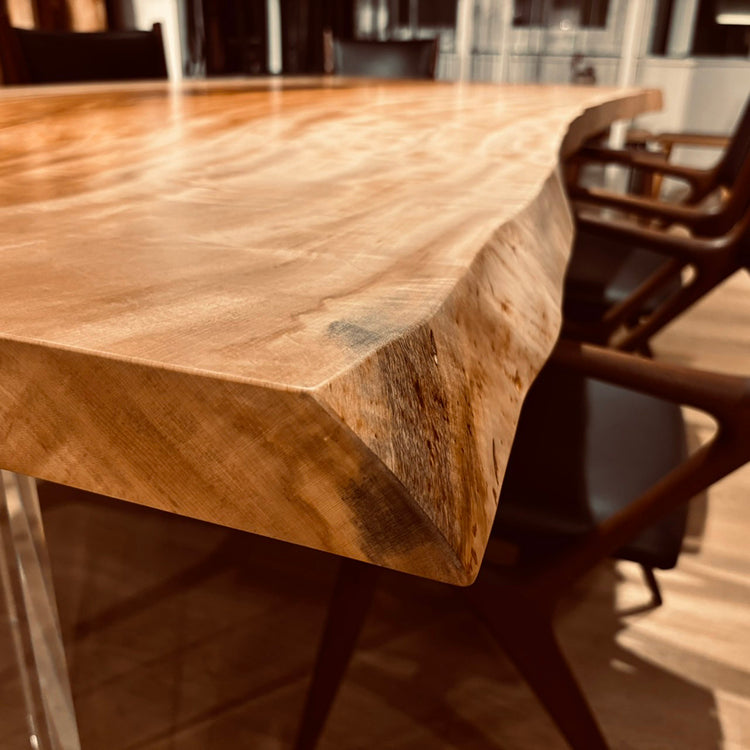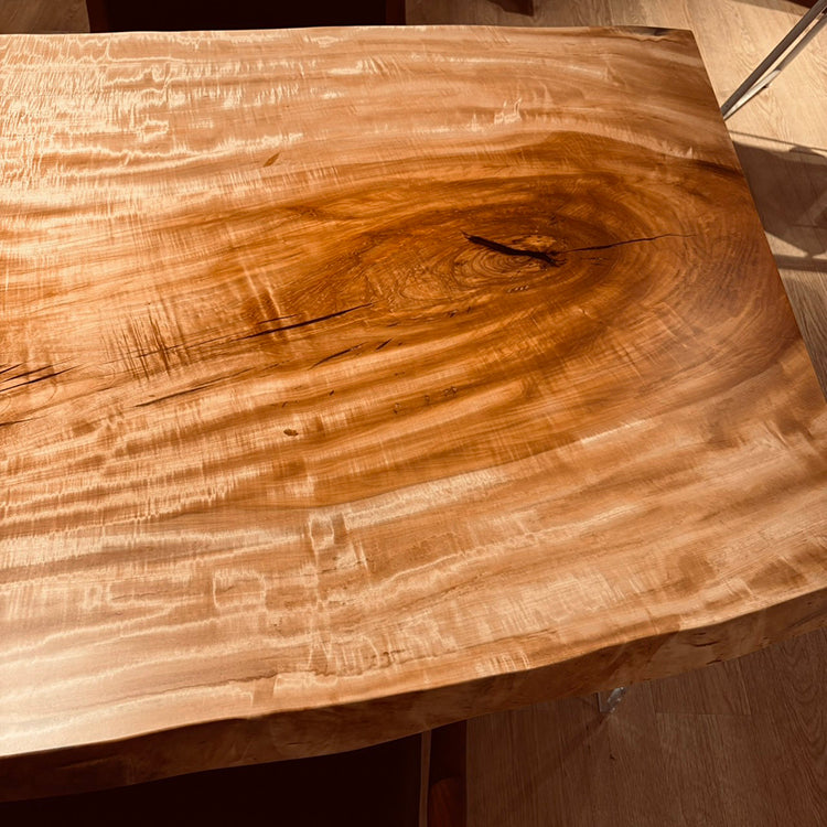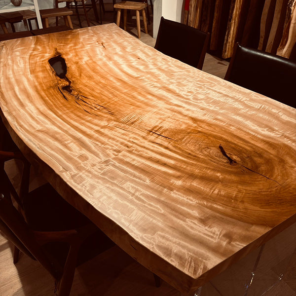 木には人と同じように個性があります。樹種や産地、樹齢はもちろん、同じ丸太から製材した一枚板でも同じものはひとつとしてありません。同じ名前の木でも色の明るいもの、暗いもの、節があるもの、傷があるものなど様々です。それは木が長い年月を過ごしてきた証であり、木が持つ個性です。だからこそ一枚板は‘世界にひとつのモノ’になるのです。