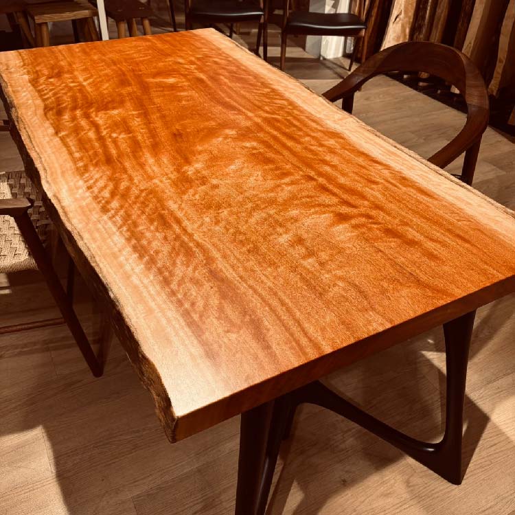 木には人と同じように個性があります。樹種や産地、樹齢はもちろん、同じ丸太から製材した一枚板でも同じものはひとつとしてありません。同じ名前の木でも色の明るいもの、暗いもの、節があるもの、傷があるものなど様々です。それは木が長い年月を過ごしてきた証であり、木が持つ個性です。だからこそ一枚板は‘世界にひとつのモノ’になるのです。