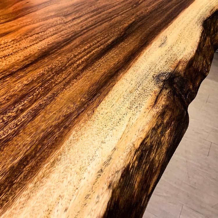 木には人と同じように個性があります。樹種や産地、樹齢はもちろん、同じ丸太から製材した一枚板でも同じものはひとつとしてありません。同じ名前の木でも色の明るいもの、暗いもの、節があるもの、傷があるものなど様々です。それは木が長い年月を過ごしてきた証であり、木が持つ個性です。だからこそ一枚板は‘世界にひとつのモノ’になるのです。