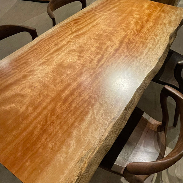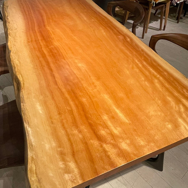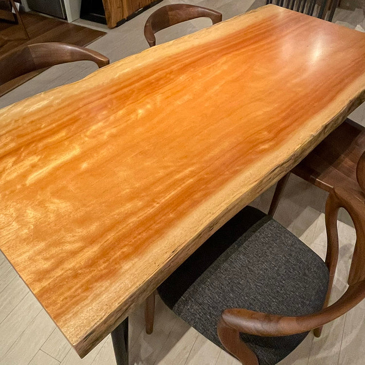 木には人と同じように個性があります。樹種や産地、樹齢はもちろん、同じ丸太から製材した一枚板でも同じものはひとつとしてありません。同じ名前の木でも色の明るいもの、暗いもの、節があるもの、傷があるものなど様々です。それは木が長い年月を過ごしてきた証であり、木が持つ個性です。だからこそ一枚板は‘世界にひとつのモノ’になるのです。
