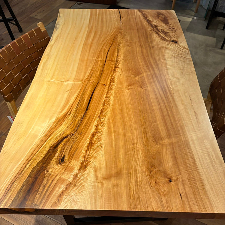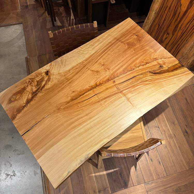 木には人と同じように個性があります。樹種や産地、樹齢はもちろん、同じ丸太から製材した一枚板でも同じものはひとつとしてありません。同じ名前の木でも色の明るいもの、暗いもの、節があるもの、傷があるものなど様々です。それは木が長い年月を過ごしてきた証であり、木が持つ個性です。だからこそ一枚板は‘世界にひとつのモノ’になるのです。