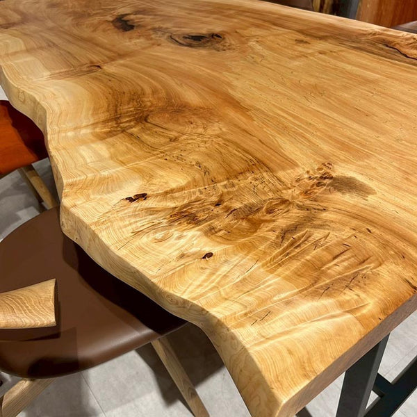 木には人と同じように個性があります。樹種や産地、樹齢はもちろん、同じ丸太から製材した一枚板でも同じものはひとつとしてありません。同じ名前の木でも色の明るいもの、暗いもの、節があるもの、傷があるものなど様々です。それは木が長い年月を過ごしてきた証であり、木が持つ個性です。だからこそ一枚板は‘世界にひとつのモノ’になるのです。