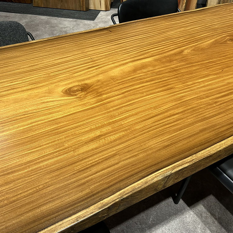 木には人と同じように個性があります。樹種や産地、樹齢はもちろん、同じ丸太から製材した一枚板でも同じものはひとつとしてありません。同じ名前の木でも色の明るいもの、暗いもの、節があるもの、傷があるものなど様々です。それは木が長い年月を過ごしてきた証であり、木が持つ個性です。だからこそ一枚板は‘世界にひとつのモノ’になるのです。