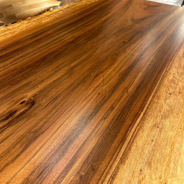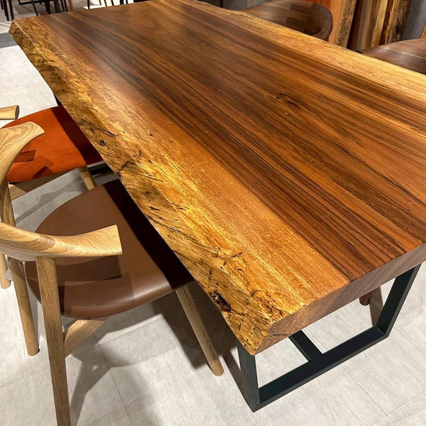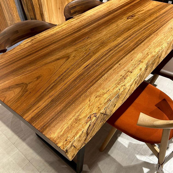 木には人と同じように個性があります。樹種や産地、樹齢はもちろん、同じ丸太から製材した一枚板でも同じものはひとつとしてありません。同じ名前の木でも色の明るいもの、暗いもの、節があるもの、傷があるものなど様々です。それは木が長い年月を過ごしてきた証であり、木が持つ個性です。だからこそ一枚板は‘世界にひとつのモノ’になるのです。