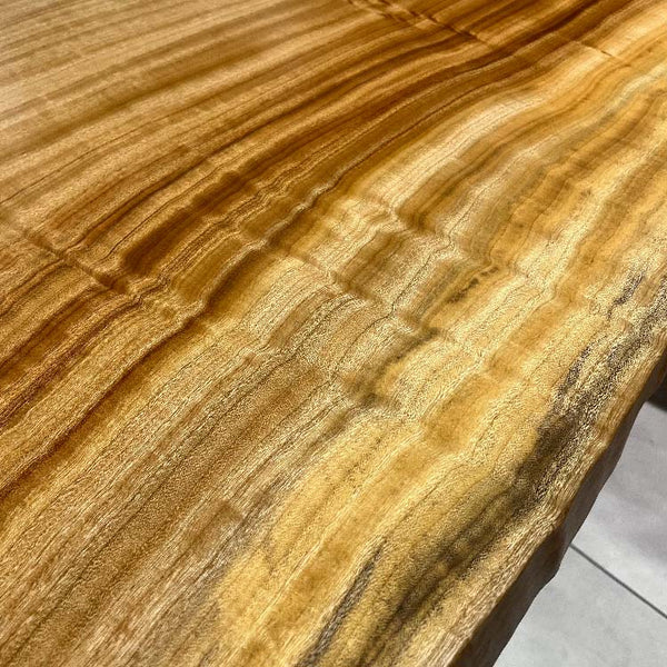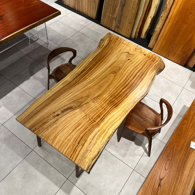 木には人と同じように個性があります。樹種や産地、樹齢はもちろん、同じ丸太から製材した一枚板でも同じものはひとつとしてありません。同じ名前の木でも色の明るいもの、暗いもの、節があるもの、傷があるものなど様々です。それは木が長い年月を過ごしてきた証であり、木が持つ個性です。だからこそ一枚板は‘世界にひとつのモノ’になるのです。