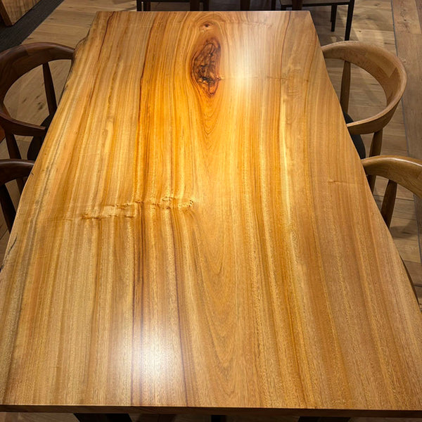木には人と同じように個性があります。樹種や産地、樹齢はもちろん、同じ丸太から製材した一枚板でも同じものはひとつとしてありません。同じ名前の木でも色の明るいもの、暗いもの、節があるもの、傷があるものなど様々です。それは木が長い年月を過ごしてきた証であり、木が持つ個性です。だからこそ一枚板は‘世界にひとつのモノ’になるのです。