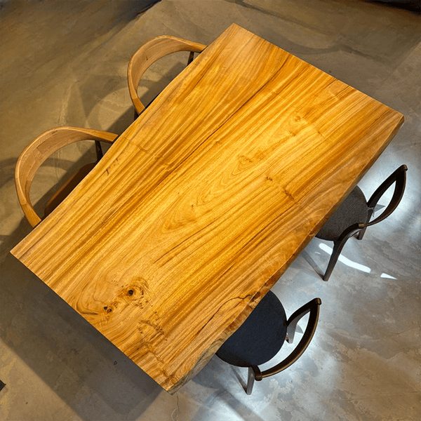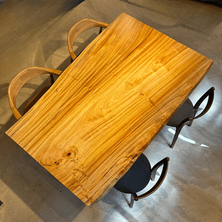 木には人と同じように個性があります。樹種や産地、樹齢はもちろん、同じ丸太から製材した一枚板でも同じものはひとつとしてありません。同じ名前の木でも色の明るいもの、暗いもの、節があるもの、傷があるものなど様々です。それは木が長い年月を過ごしてきた証であり、木が持つ個性です。だからこそ一枚板は‘世界にひとつのモノ’になるのです。