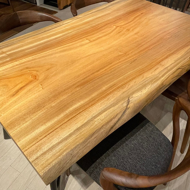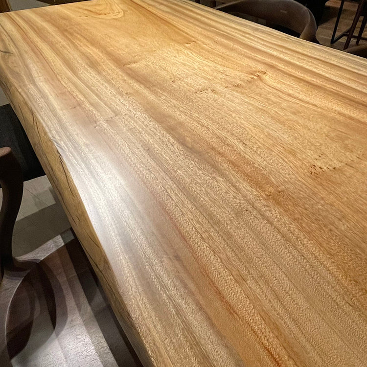 木には人と同じように個性があります。樹種や産地、樹齢はもちろん、同じ丸太から製材した一枚板でも同じものはひとつとしてありません。同じ名前の木でも色の明るいもの、暗いもの、節があるもの、傷があるものなど様々です。それは木が長い年月を過ごしてきた証であり、木が持つ個性です。だからこそ一枚板は‘世界にひとつのモノ’になるのです。