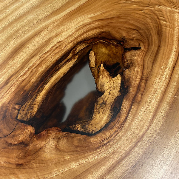 木には人と同じように個性があります。樹種や産地、樹齢はもちろん、同じ丸太から製材した一枚板でも同じものはひとつとしてありません。同じ名前の木でも色の明るいもの、暗いもの、節があるもの、傷があるものなど様々です。それは木が長い年月を過ごしてきた証であり、木が持つ個性です。だからこそ一枚板は‘世界にひとつのモノ’になるのです。