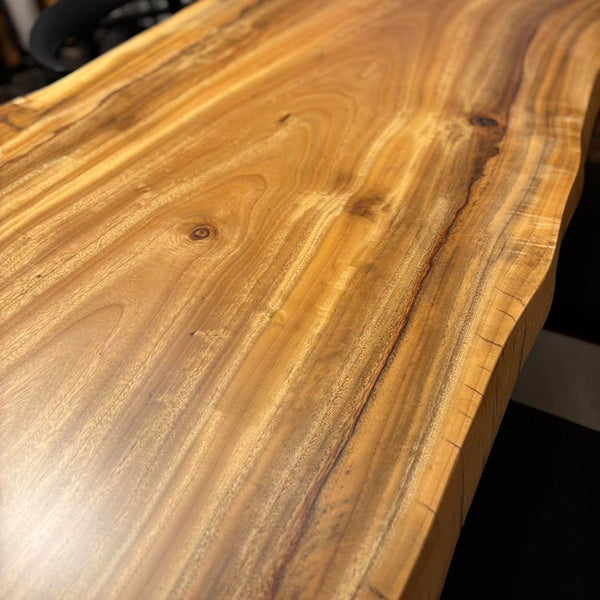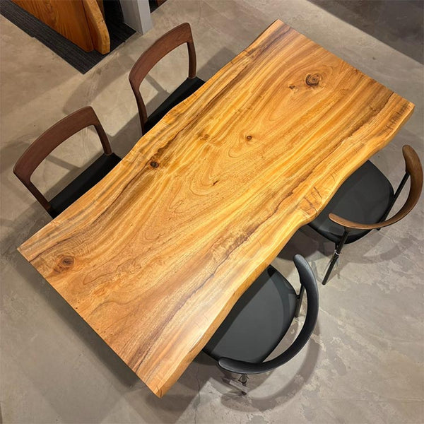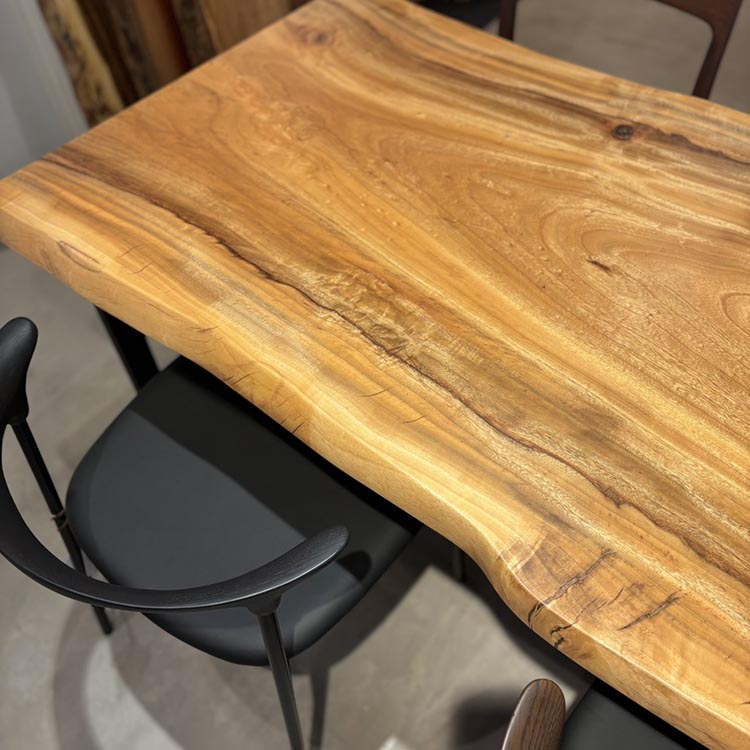 木には人と同じように個性があります。樹種や産地、樹齢はもちろん、同じ丸太から製材した一枚板でも同じものはひとつとしてありません。同じ名前の木でも色の明るいもの、暗いもの、節があるもの、傷があるものなど様々です。それは木が長い年月を過ごしてきた証であり、木が持つ個性です。だからこそ一枚板は‘世界にひとつのモノ’になるのです。