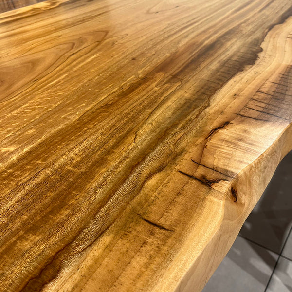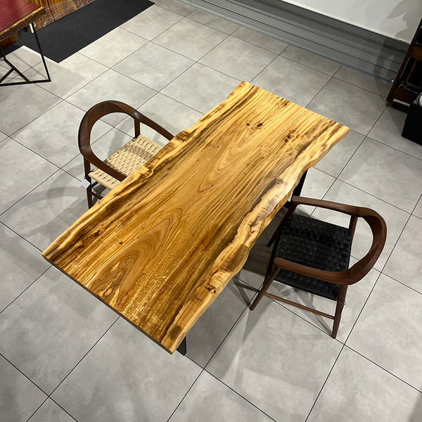 木には人と同じように個性があります。樹種や産地、樹齢はもちろん、同じ丸太から製材した一枚板でも同じものはひとつとしてありません。同じ名前の木でも色の明るいもの、暗いもの、節があるもの、傷があるものなど様々です。それは木が長い年月を過ごしてきた証であり、木が持つ個性です。だからこそ一枚板は‘世界にひとつのモノ’になるのです。