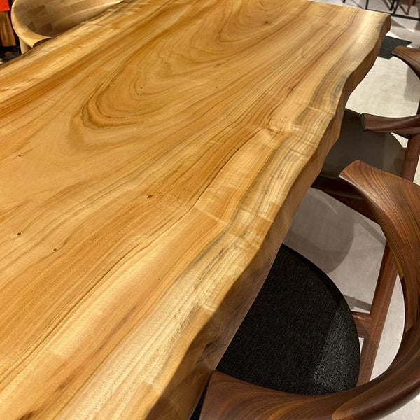 木には人と同じように個性があります。樹種や産地、樹齢はもちろん、同じ丸太から製材した一枚板でも同じものはひとつとしてありません。同じ名前の木でも色の明るいもの、暗いもの、節があるもの、傷があるものなど様々です。それは木が長い年月を過ごしてきた証であり、木が持つ個性です。だからこそ一枚板は‘世界にひとつのモノ’になるのです。