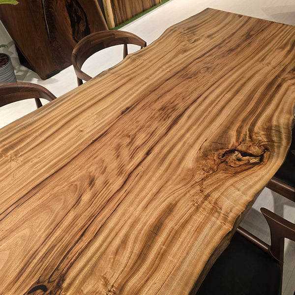 木には人と同じように個性があります。樹種や産地、樹齢はもちろん、同じ丸太から製材した一枚板でも同じものはひとつとしてありません。同じ名前の木でも色の明るいもの、暗いもの、節があるもの、傷があるものなど様々です。それは木が長い年月を過ごしてきた証であり、木が持つ個性です。だからこそ一枚板は‘世界にひとつのモノ’になるのです。