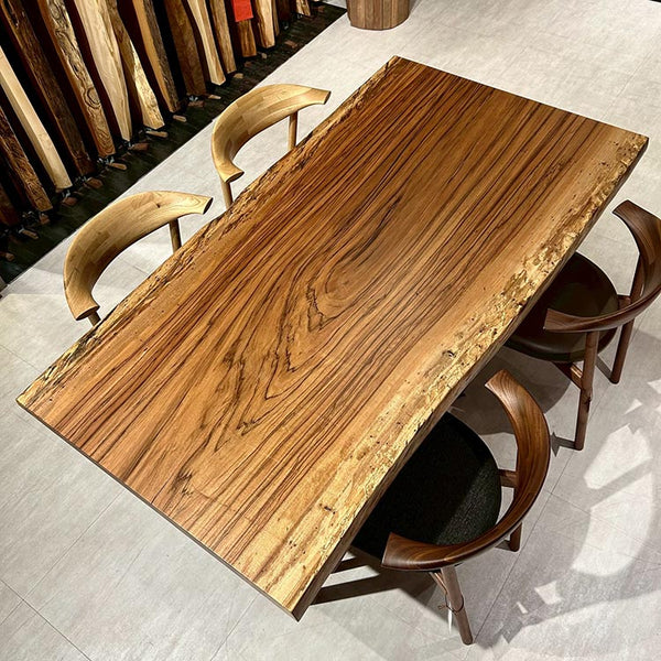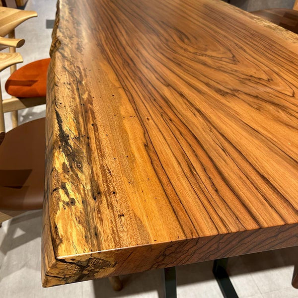 木には人と同じように個性があります。樹種や産地、樹齢はもちろん、同じ丸太から製材した一枚板でも同じものはひとつとしてありません。同じ名前の木でも色の明るいもの、暗いもの、節があるもの、傷があるものなど様々です。それは木が長い年月を過ごしてきた証であり、木が持つ個性です。だからこそ一枚板は‘世界にひとつのモノ’になるのです。