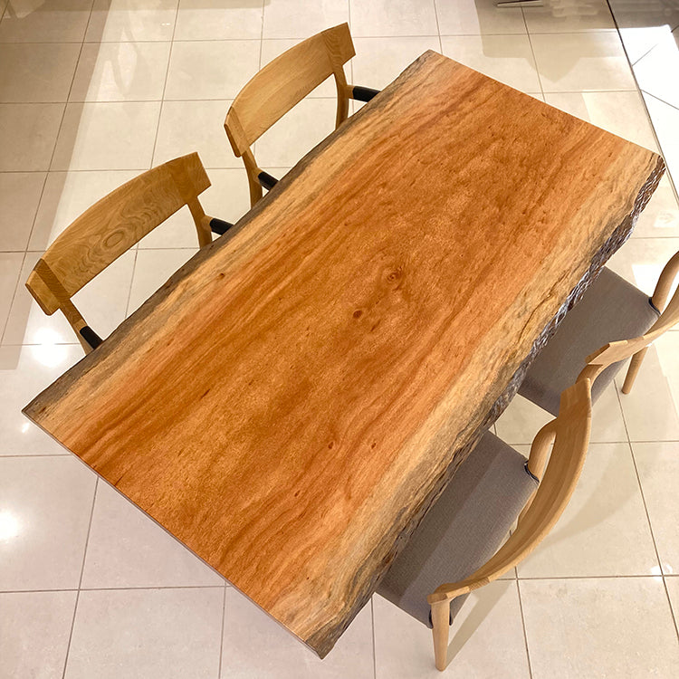 木には人と同じように個性があります。樹種や産地、樹齢はもちろん、同じ丸太から製材した一枚板でも同じものはひとつとしてありません。同じ名前の木でも色の明るいもの、暗いもの、節があるもの、傷があるものなど様々です。それは木が長い年月を過ごしてきた証であり、木が持つ個性です。だからこそ一枚板は‘世界にひとつのモノ’になるのです。
