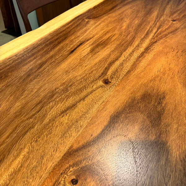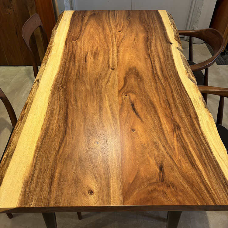 木には人と同じように個性があります。樹種や産地、樹齢はもちろん、同じ丸太から製材した一枚板でも同じものはひとつとしてありません。同じ名前の木でも色の明るいもの、暗いもの、節があるもの、傷があるものなど様々です。それは木が長い年月を過ごしてきた証であり、木が持つ個性です。だからこそ一枚板は‘世界にひとつのモノ’になるのです。