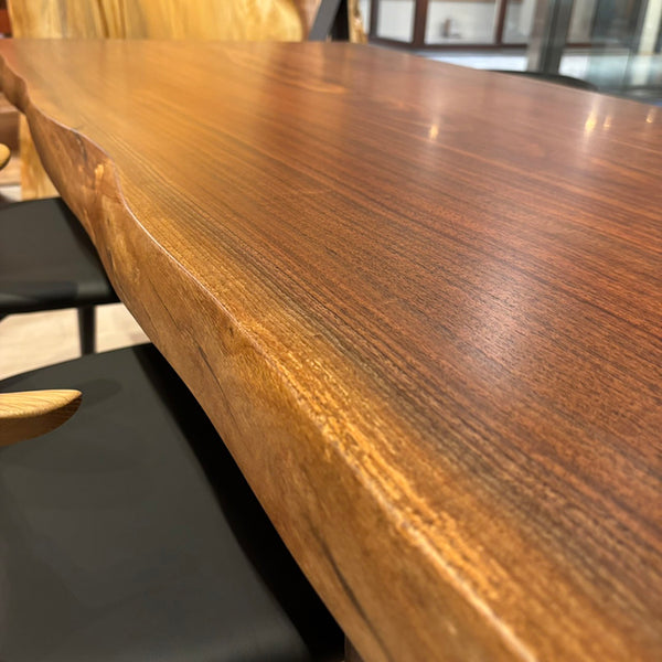 木には人と同じように個性があります。樹種や産地、樹齢はもちろん、同じ丸太から製材した一枚板でも同じものはひとつとしてありません。同じ名前の木でも色の明るいもの、暗いもの、節があるもの、傷があるものなど様々です。それは木が長い年月を過ごしてきた証であり、木が持つ個性です。だからこそ一枚板は‘世界にひとつのモノ’になるのです。