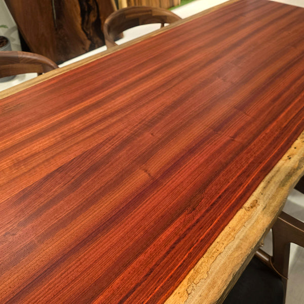 木には人と同じように個性があります。樹種や産地、樹齢はもちろん、同じ丸太から製材した一枚板でも同じものはひとつとしてありません。同じ名前の木でも色の明るいもの、暗いもの、節があるもの、傷があるものなど様々です。それは木が長い年月を過ごしてきた証であり、木が持つ個性です。だからこそ一枚板は‘世界にひとつのモノ’になるのです。