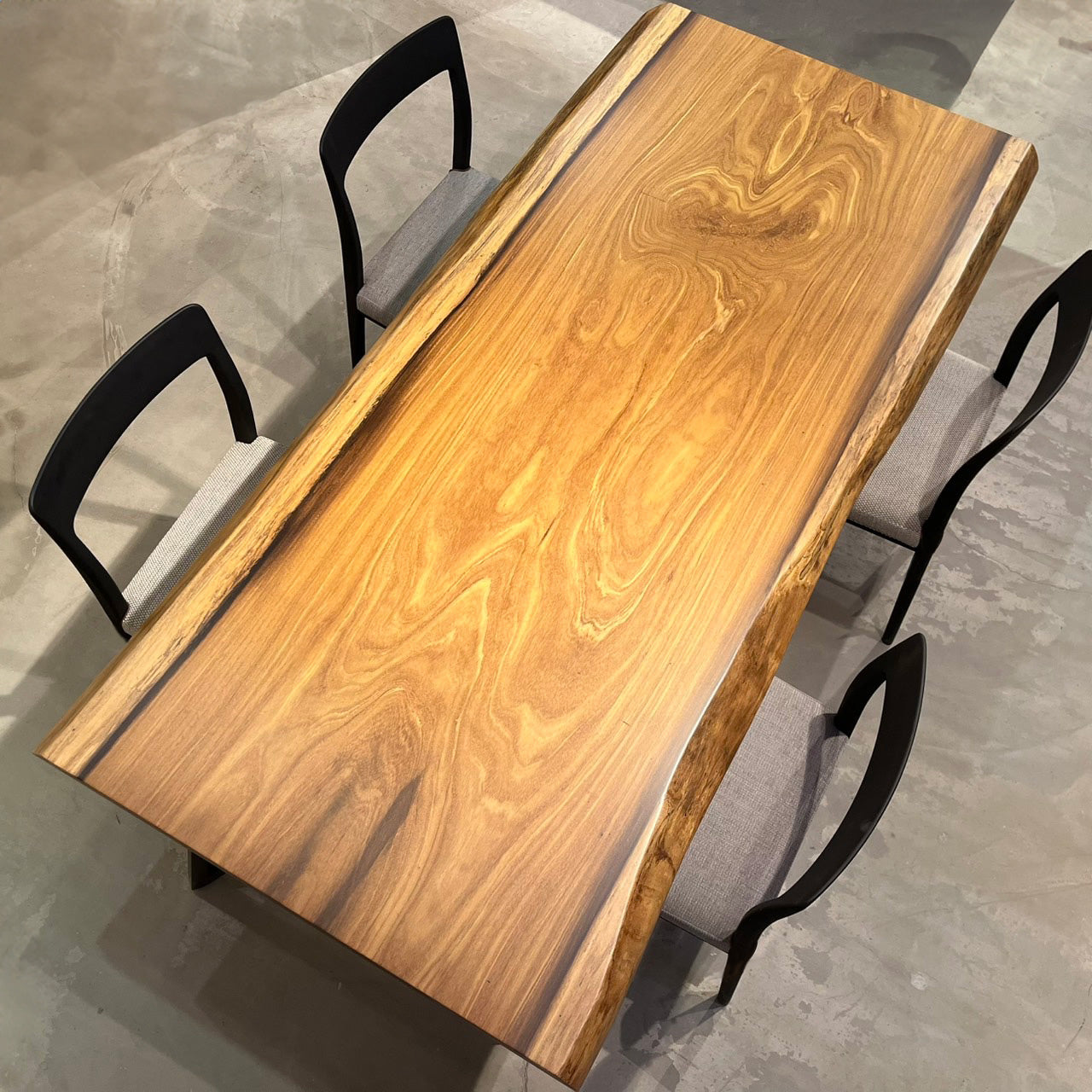 木には人と同じように個性があります。樹種や産地、樹齢はもちろん、同じ丸太から製材した一枚板でも同じものはひとつとしてありません。同じ名前の木でも色の明るいもの、暗いもの、節があるもの、傷があるものなど様々です。それは木が長い年月を過ごしてきた証であり、木が持つ個性です。だからこそ一枚板は‘世界にひとつのモノ’になるのです。