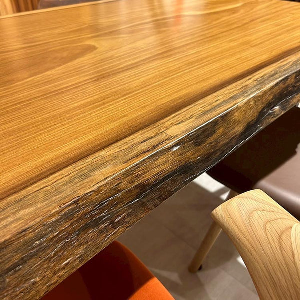 木には人と同じように個性があります。樹種や産地、樹齢はもちろん、同じ丸太から製材した一枚板でも同じものはひとつとしてありません。同じ名前の木でも色の明るいもの、暗いもの、節があるもの、傷があるものなど様々です。それは木が長い年月を過ごしてきた証であり、木が持つ個性です。だからこそ一枚板は‘世界にひとつのモノ’になるのです。