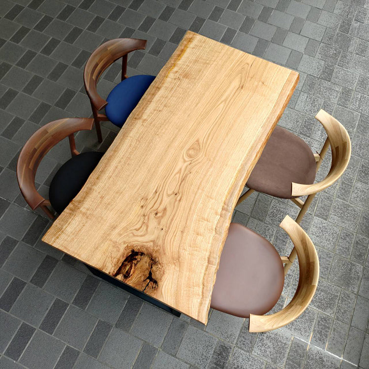 木には人と同じように個性があります。樹種や産地、樹齢はもちろん、同じ丸太から製材した一枚板でも同じものはひとつとしてありません。同じ名前の木でも色の明るいもの、暗いもの、節があるもの、傷があるものなど様々です。それは木が長い年月を過ごしてきた証であり、木が持つ個性です。だからこそ一枚板は‘世界にひとつのモノ’になるのです。