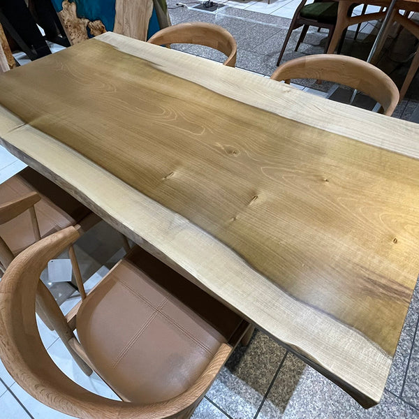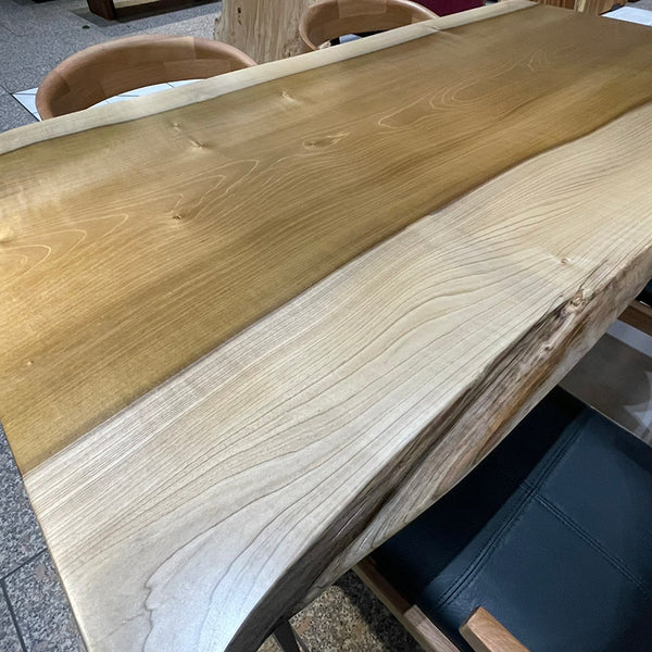 木には人と同じように個性があります。樹種や産地、樹齢はもちろん、同じ丸太から製材した一枚板でも同じものはひとつとしてありません。同じ名前の木でも色の明るいもの、暗いもの、節があるもの、傷があるものなど様々です。それは木が長い年月を過ごしてきた証であり、木が持つ個性です。だからこそ一枚板は‘世界にひとつのモノ’になるのです。
