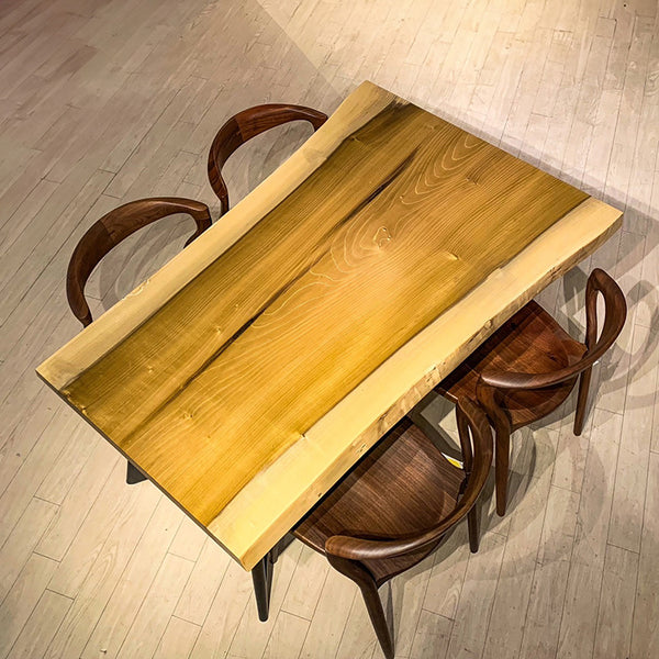 木には人と同じように個性があります。樹種や産地、樹齢はもちろん、同じ丸太から製材した一枚板でも同じものはひとつとしてありません。同じ名前の木でも色の明るいもの、暗いもの、節があるもの、傷があるものなど様々です。それは木が長い年月を過ごしてきた証であり、木が持つ個性です。だからこそ一枚板は‘世界にひとつのモノ’になるのです。