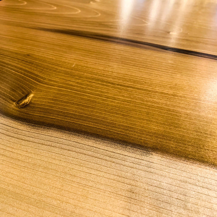 弊社独自の調合を施した3種類の塗料を表裏それぞれに薄く重ね塗りすることで、木本来の風合いを残しつつ高い耐久性を誇る仕上げとなっています。UVカットの効果もあるため、紫外線による変色も起こり難くなっています。