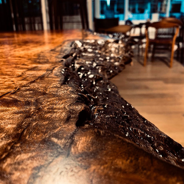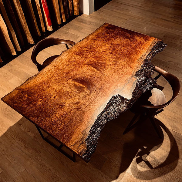 木には人と同じように個性があります。樹種や産地、樹齢はもちろん、同じ丸太から製材した一枚板でも同じものはひとつとしてありません。同じ名前の木でも色の明るいもの、暗いもの、節があるもの、傷があるものなど様々です。それは木が長い年月を過ごしてきた証であり、木が持つ個性です。だからこそ一枚板は‘世界にひとつのモノ’になるのです。