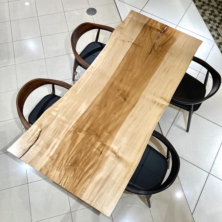 木には人と同じように個性があります。樹種や産地、樹齢はもちろん、同じ丸太から製材した一枚板でも同じものはひとつとしてありません。同じ名前の木でも色の明るいもの、暗いもの、節があるもの、傷があるものなど様々です。それは木が長い年月を過ごしてきた証であり、木が持つ個性です。だからこそ一枚板は‘世界にひとつのモノ’になるのです。