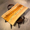 樹脂膜が水や汚れから木を保護してくれますので、日頃のお手入れは乾拭きや水拭きのみで済み、非常に楽にお使いいただける点が特徴です。特に飲食が主な用途になるダイニングテーブルでは、その効果を特に発揮します。
