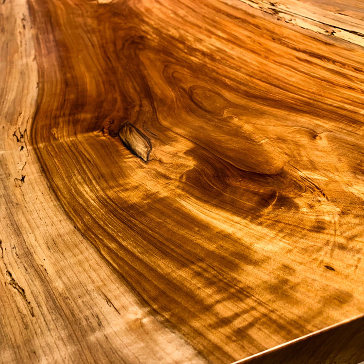 木には人と同じように個性があります。樹種や産地、樹齢はもちろん、同じ丸太から製材した一枚板でも同じものはひとつとしてありません。同じ名前の木でも色の明るいもの、暗いもの、節があるもの、傷があるものなど様々です。それは木が長い年月を過ごしてきた証であり、木が持つ個性です。だからこそ一枚板は‘世界にひとつのモノ’になるのです。
