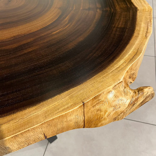 木には人と同じように個性があります。樹種や産地、樹齢はもちろん、同じ丸太から製材した一枚板でも同じものはひとつとしてありません。同じ名前の木でも色の明るいもの、暗いもの、節があるもの、傷があるものなど様々です。それは木が長い年月を過ごしてきた証であり、木が持つ個性です。だからこそ一枚板は‘世界にひとつのモノ’になるのです。