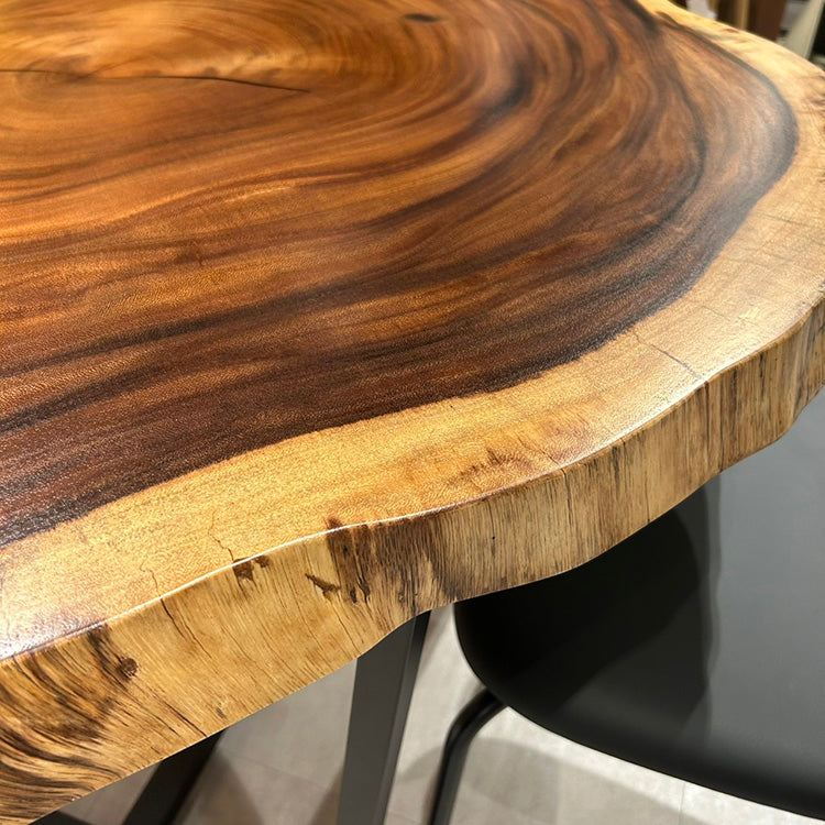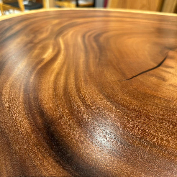 木には人と同じように個性があります。樹種や産地、樹齢はもちろん、同じ丸太から製材した一枚板でも同じものはひとつとしてありません。同じ名前の木でも色の明るいもの、暗いもの、節があるもの、傷があるものなど様々です。それは木が長い年月を過ごしてきた証であり、木が持つ個性です。だからこそ一枚板は‘世界にひとつのモノ’になるのです。