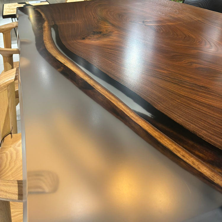 樹脂膜が水や汚れから木を保護してくれますので、日頃のお手入れは乾拭きや水拭きのみで済み、非常に楽にお使いいただける点が特徴です。特に飲食が主な用途になるダイニングテーブルでは、その効果を特に発揮します。
