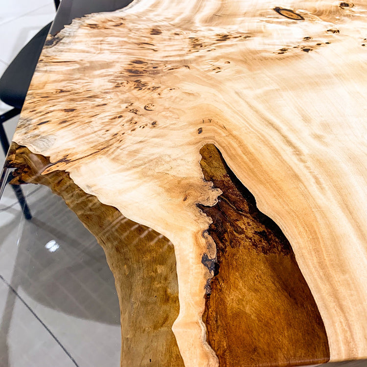 木には人と同じように個性があります。樹種や産地、樹齢はもちろん、同じ丸太から製材した一枚板でも同じものはひとつとしてありません。同じ名前の木でも色の明るいもの、暗いもの、節があるもの、傷があるものなど様々です。それは木が長い年月を過ごしてきた証であり、木が持つ個性です。だからこそ一枚板は‘世界にひとつのモノ’になるのです。