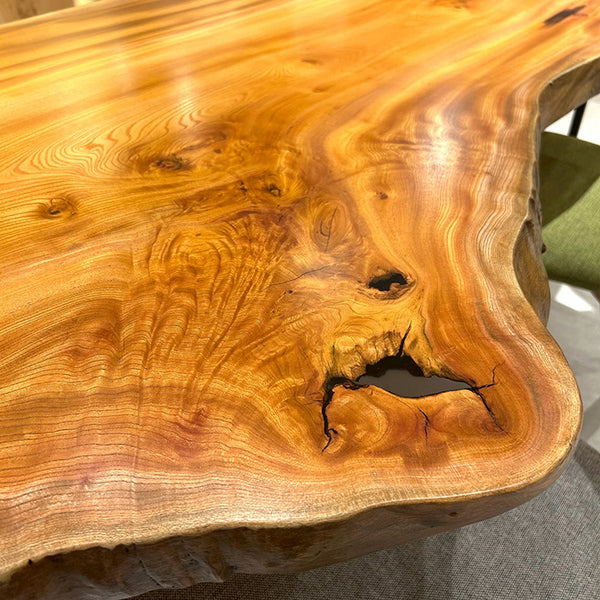 木には人と同じように個性があります。樹種や産地、樹齢はもちろん、同じ丸太から製材した一枚板でも同じものはひとつとしてありません。同じ名前の木でも色の明るいもの、暗いもの、節があるもの、傷があるものなど様々です。それは木が長い年月を過ごしてきた証であり、木が持つ個性です。だからこそ一枚板は‘世界にひとつのモノ’になるのです。