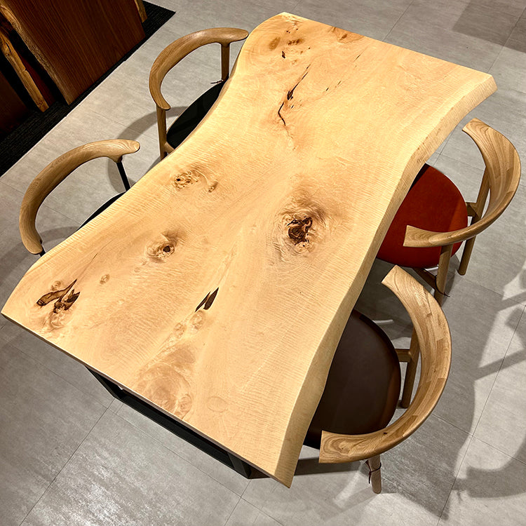 木には人と同じように個性があります。樹種や産地、樹齢はもちろん、同じ丸太から製材した一枚板でも同じものはひとつとしてありません。同じ名前の木でも色の明るいもの、暗いもの、節があるもの、傷があるものなど様々です。それは木が長い年月を過ごしてきた証であり、木が持つ個性です。だからこそ一枚板は‘世界にひとつのモノ’になるのです。