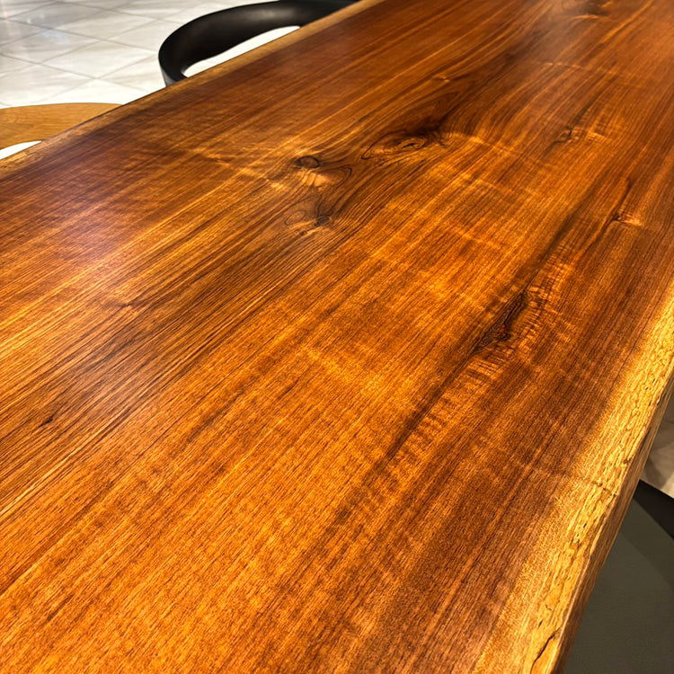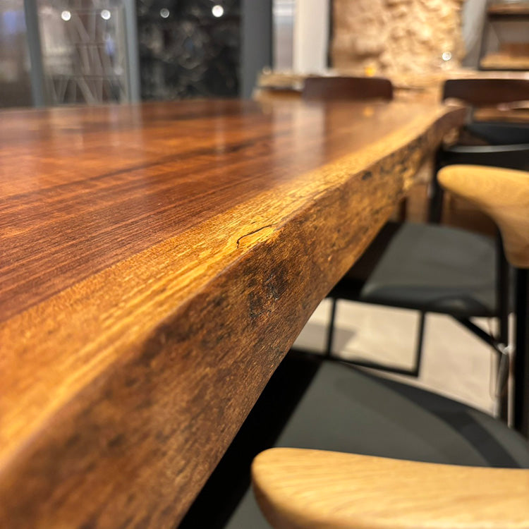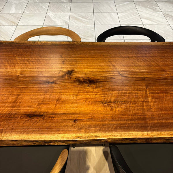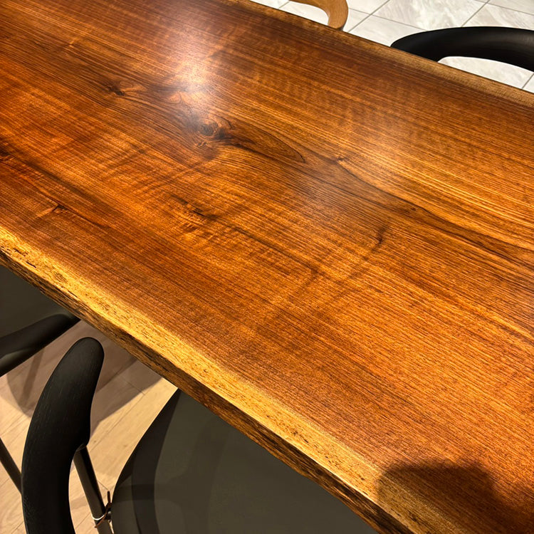 木には人と同じように個性があります。樹種や産地、樹齢はもちろん、同じ丸太から製材した一枚板でも同じものはひとつとしてありません。同じ名前の木でも色の明るいもの、暗いもの、節があるもの、傷があるものなど様々です。それは木が長い年月を過ごしてきた証であり、木が持つ個性です。だからこそ一枚板は‘世界にひとつのモノ’になるのです。