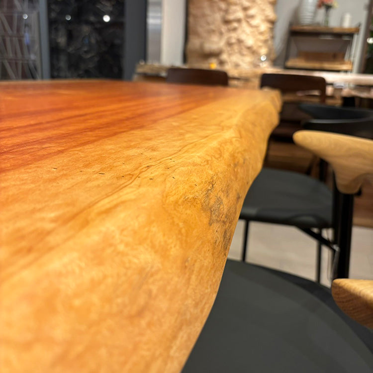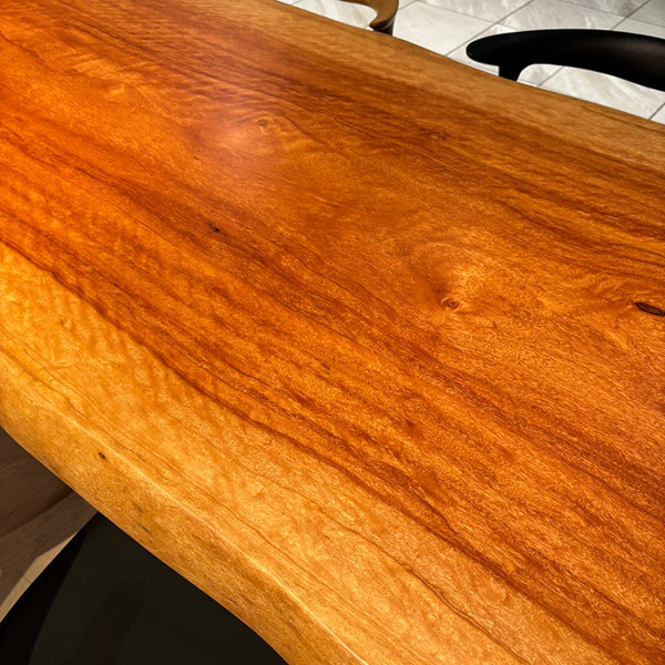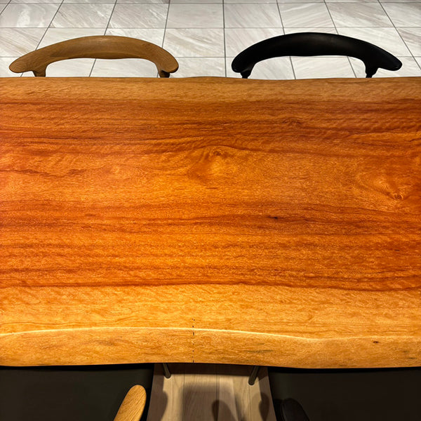 木には人と同じように個性があります。樹種や産地、樹齢はもちろん、同じ丸太から製材した一枚板でも同じものはひとつとしてありません。同じ名前の木でも色の明るいもの、暗いもの、節があるもの、傷があるものなど様々です。それは木が長い年月を過ごしてきた証であり、木が持つ個性です。だからこそ一枚板は‘世界にひとつのモノ’になるのです。