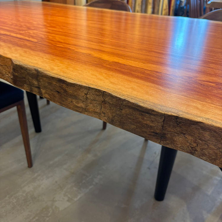 木には人と同じように個性があります。樹種や産地、樹齢はもちろん、同じ丸太から製材した一枚板でも同じものはひとつとしてありません。同じ名前の木でも色の明るいもの、暗いもの、節があるもの、傷があるものなど様々です。それは木が長い年月を過ごしてきた証であり、木が持つ個性です。だからこそ一枚板は‘世界にひとつのモノ’になるのです。