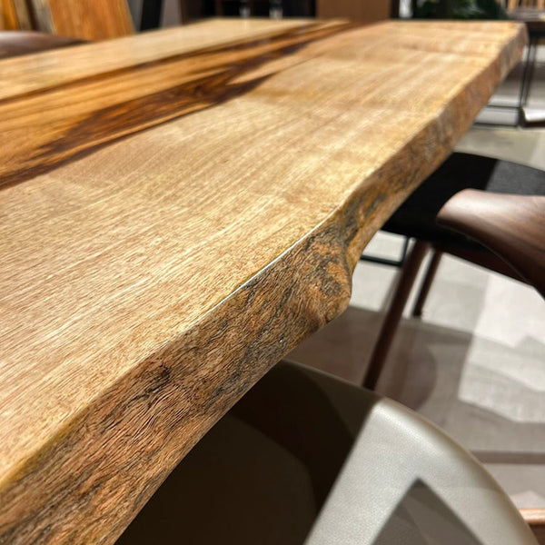 木には人と同じように個性があります。樹種や産地、樹齢はもちろん、同じ丸太から製材した一枚板でも同じものはひとつとしてありません。同じ名前の木でも色の明るいもの、暗いもの、節があるもの、傷があるものなど様々です。それは木が長い年月を過ごしてきた証であり、木が持つ個性です。だからこそ一枚板は‘世界にひとつのモノ’になるのです。
