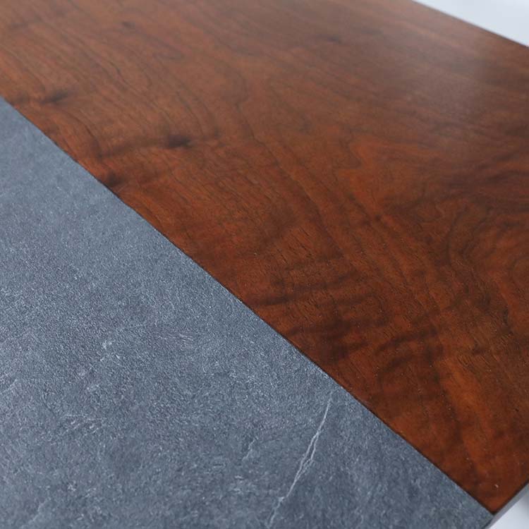 樹脂膜が水や汚れから木を保護してくれますので、日頃のお手入れは乾拭きや水拭きのみで済み、非常に楽にお使いいただける点が特徴です。特に飲食が主な用途になるダイニングテーブルでは、その効果を特に発揮します。