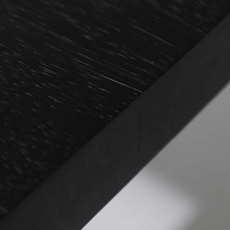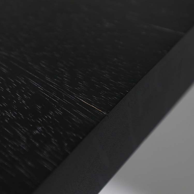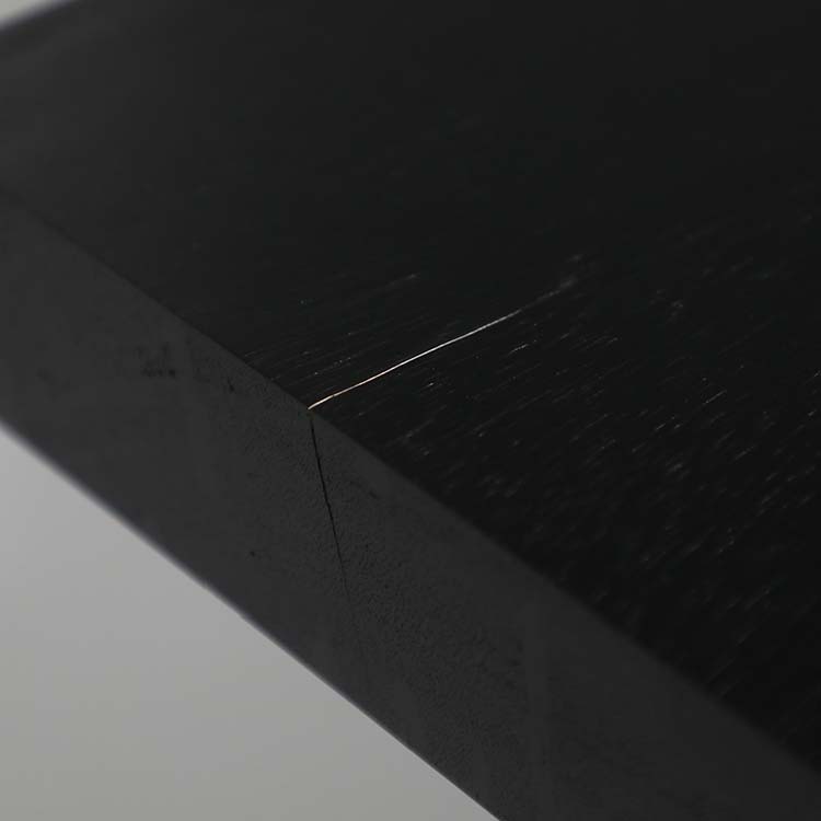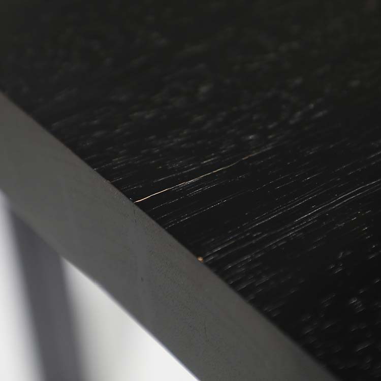 樹脂膜が水や汚れから木を保護してくれますので、日頃のお手入れは乾拭きや水拭きのみで済み、非常に楽にお使いいただける点が特徴です。特に飲食が主な用途になるダイニングテーブルでは、その効果を特に発揮します。