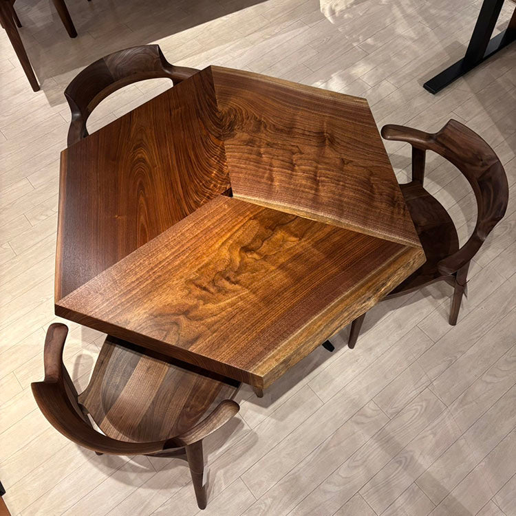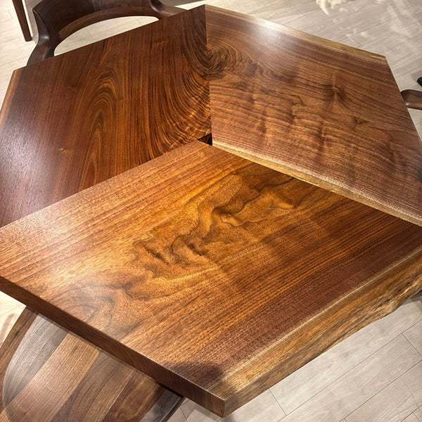 木には人と同じように個性があります。樹種や産地、樹齢はもちろん、同じ丸太から製材した一枚板でも同じものはひとつとしてありません。同じ名前の木でも色の明るいもの、暗いもの、節があるもの、傷があるものなど様々です。それは木が長い年月を過ごしてきた証であり、木が持つ個性です。だからこそ一枚板は‘世界にひとつのモノ’になるのです。