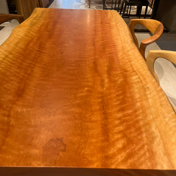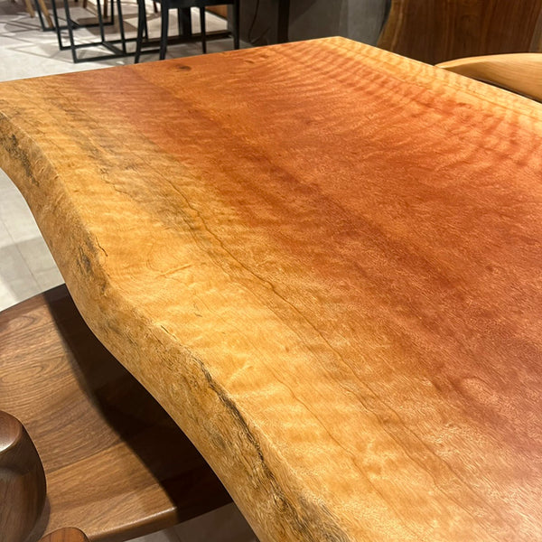 木には人と同じように個性があります。樹種や産地、樹齢はもちろん、同じ丸太から製材した一枚板でも同じものはひとつとしてありません。同じ名前の木でも色の明るいもの、暗いもの、節があるもの、傷があるものなど様々です。それは木が長い年月を過ごしてきた証であり、木が持つ個性です。だからこそ一枚板は‘世界にひとつのモノ’になるのです。