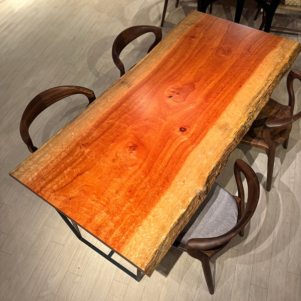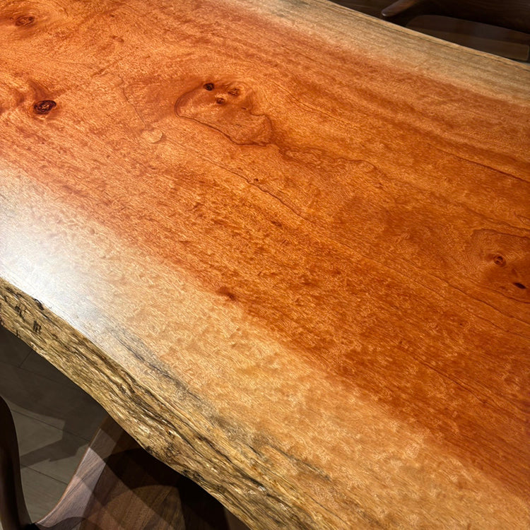 木には人と同じように個性があります。樹種や産地、樹齢はもちろん、同じ丸太から製材した一枚板でも同じものはひとつとしてありません。同じ名前の木でも色の明るいもの、暗いもの、節があるもの、傷があるものなど様々です。それは木が長い年月を過ごしてきた証であり、木が持つ個性です。だからこそ一枚板は‘世界にひとつのモノ’になるのです。