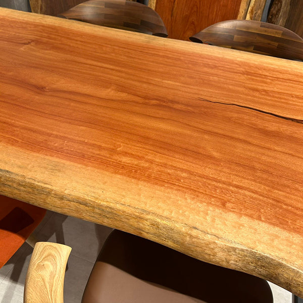 木には人と同じように個性があります。樹種や産地、樹齢はもちろん、同じ丸太から製材した一枚板でも同じものはひとつとしてありません。同じ名前の木でも色の明るいもの、暗いもの、節があるもの、傷があるものなど様々です。それは木が長い年月を過ごしてきた証であり、木が持つ個性です。だからこそ一枚板は‘世界にひとつのモノ’になるのです。