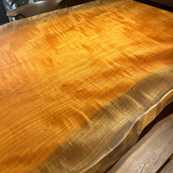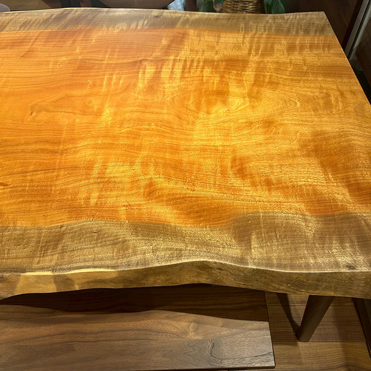 木には人と同じように個性があります。樹種や産地、樹齢はもちろん、同じ丸太から製材した一枚板でも同じものはひとつとしてありません。同じ名前の木でも色の明るいもの、暗いもの、節があるもの、傷があるものなど様々です。それは木が長い年月を過ごしてきた証であり、木が持つ個性です。だからこそ一枚板は‘世界にひとつのモノ’になるのです。